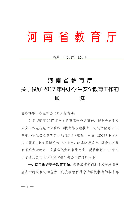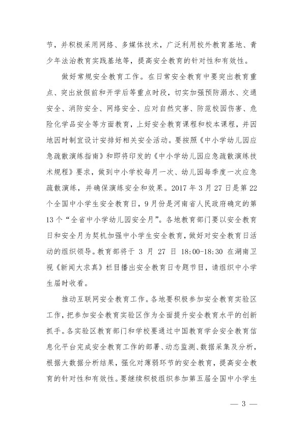 关于转发《河南省教育厅<关于做好2017年中小学生安全教育工作的通知>》的通知